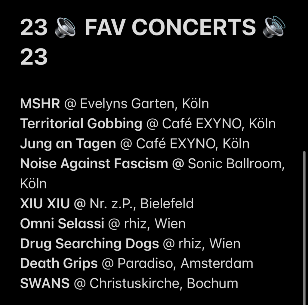 und als bonus noch meine lieblingskonzerte dieses jahr.